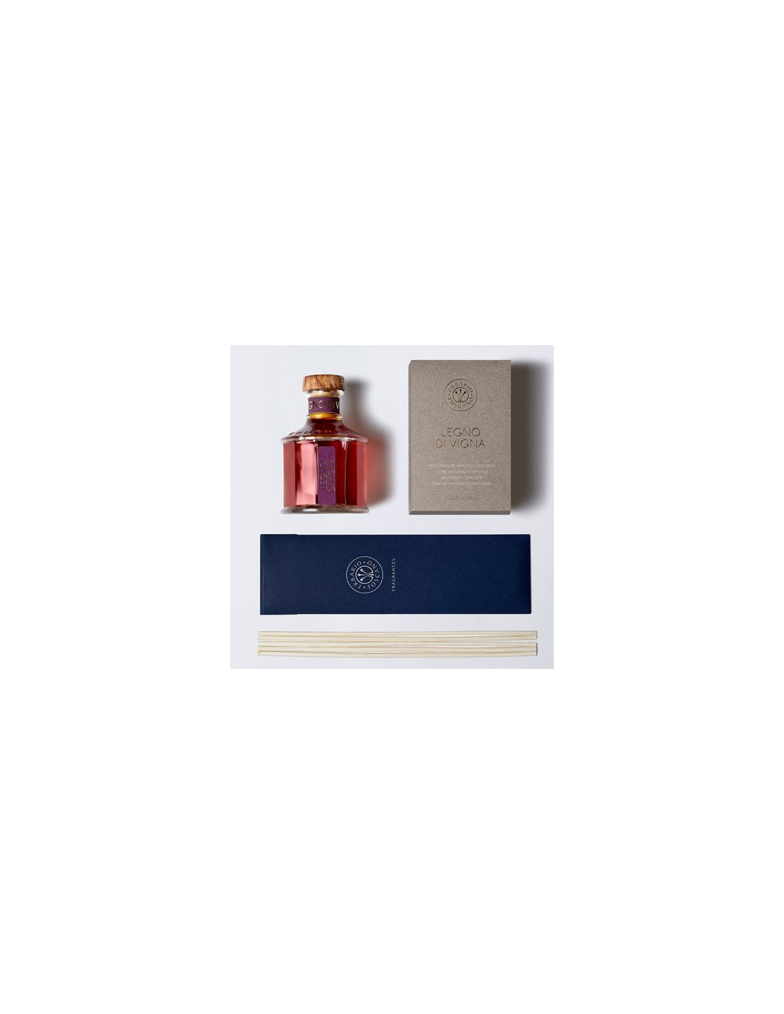 Le parfum Legno di Vigna associe les notes fortes des raisins séchés au bois vivant des vignobles toscans historiques pour parfumer l'environnement de manière simple et naturelle. Un plongeon dans le parfum de l'histoire du monde, quand tout était sur le point de commencer.