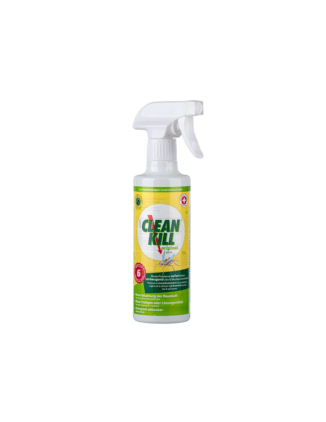Le spray insecticide CLEAN KILL Original plus agit de manière très efficace et durable contre les insectes rampants et volants tels que : moustiques, mouches, mites, cafards, acariens, poux, fourmis, cloportes, perce-oreilles, punaises de lit, puces, poissons d'argent, scarabées de tapis, etc. ainsi que toutes sortes d'araignées. Les problèmes aigus sont résolus immédiatement. Utiliser toutes les 6 semaines à titre préventif.