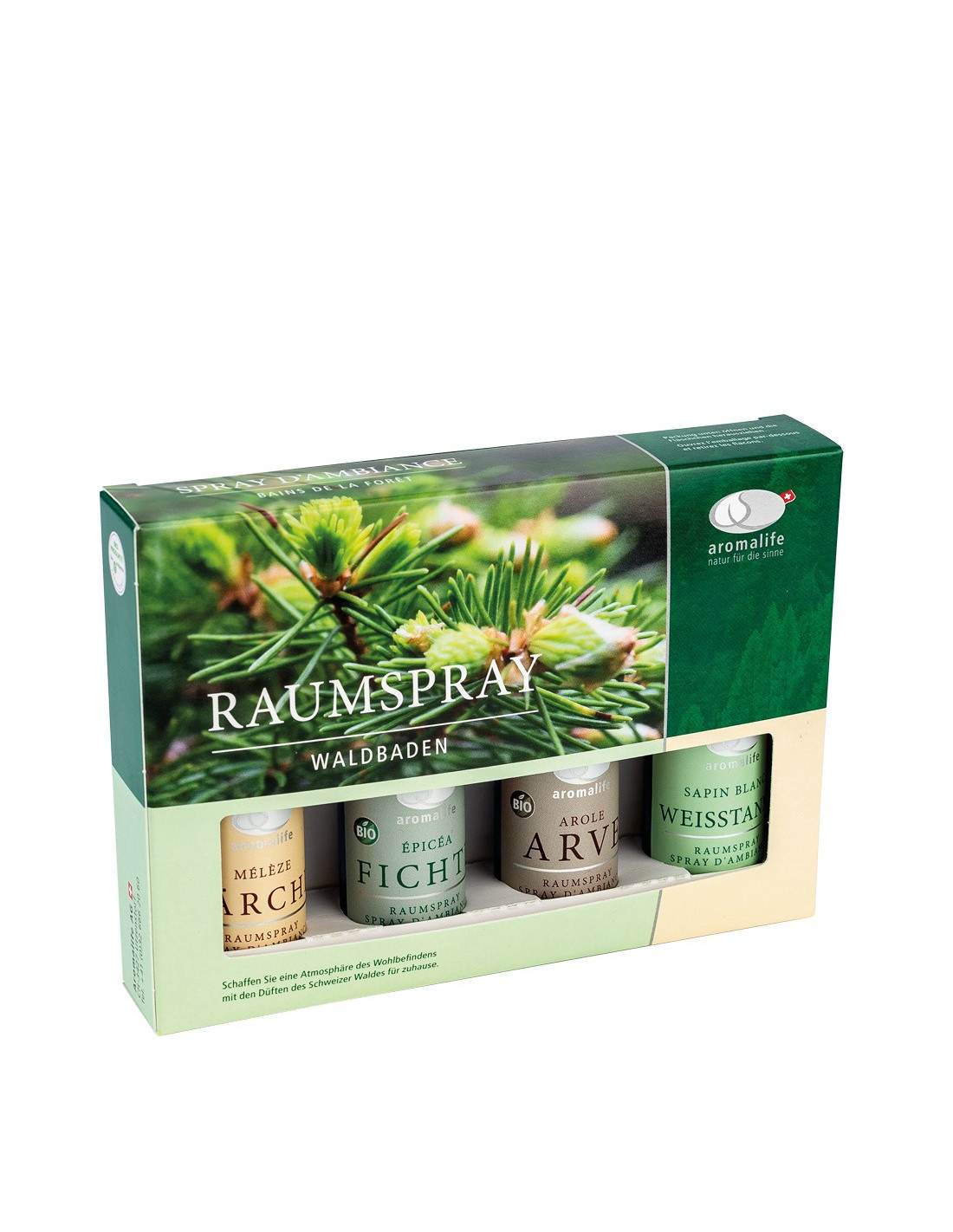 Contiene: 30 ml ciascuno di spray per ambienti Cirmolo, Abete rosso, Larice e Abete bianco.