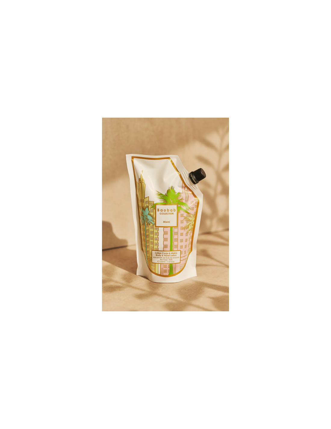 La fragranza solare e acquatica della lozione per mani e corpo Miami offre una sensazione molto piacevole. Le note di sale marino, pino e cipresso rendono questa fragranza un vero e proprio profumo di sole e d'estate. Nata dal ricordo delle spiagge di South Beach al mattino presto, è l'espressione di una Miami che si risveglia lentamente nel fresco del mattino. La vegetazione lussureggiante è inumidita dagli spruzzi del mare, mentre si sente il calore del sole che evapora lentamente le note legnose ed erbacee.